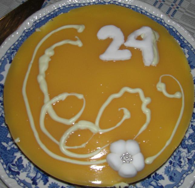 Vi hade för någon vecka sedan kalas för min bror som fyllde 24. Jag bakade då denna mango och chokladmousse tårta. Denna tårta tar tid att göra då det är flera lager, men den är väldigt god. Tårtan är glutenfri. Dekorationen blev inte riktigt som jag tänkt mig. Jag har ännu inga "riktiga" verktyg att jobba med för att få bästa resultat. Det var även första gången jag testade på att jobba med sugarpaste, vilket inte riktigt passade till denna tårta då översta lagret är "halt" så siffrorna gled av.