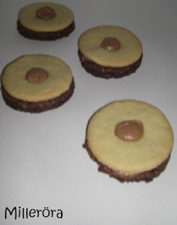 Nötkrämen finns att köpa färdig i små påsar i mataffären.Vaniljkakorna kommer från Cupcakesfluffans blogg.