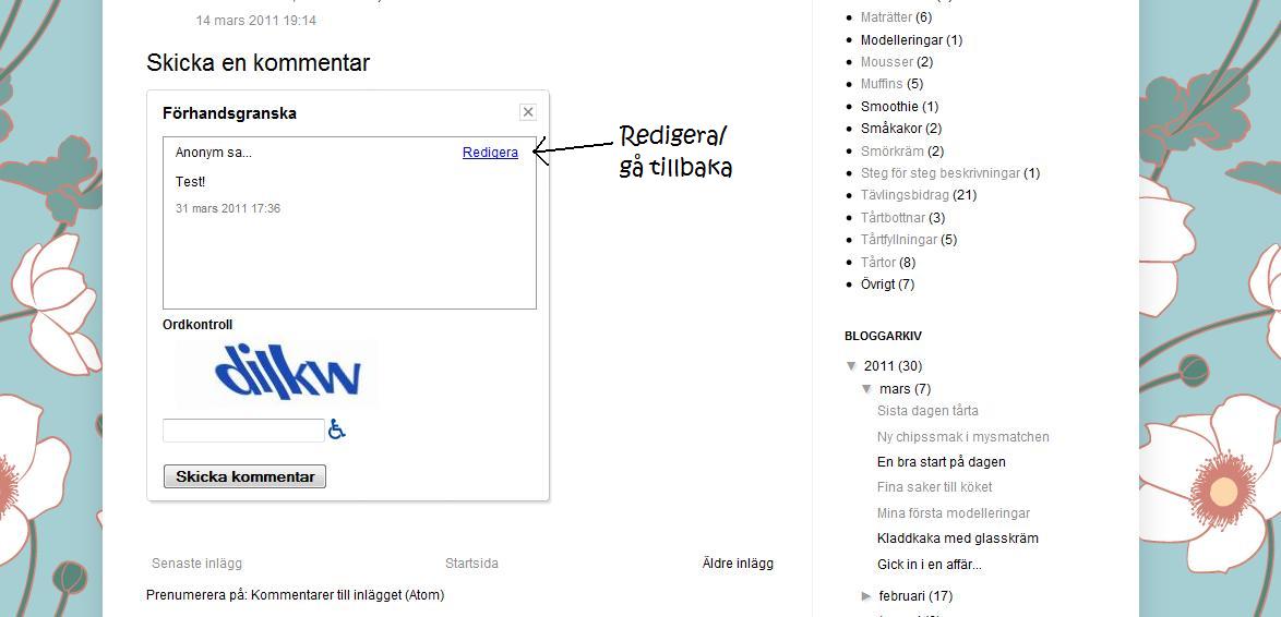 Är du nöjd kan du skicka kommentaren genom att fylla i bokstäverna som står i stor blå text, (i detta fallet "dilkw").