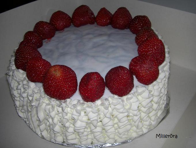 Dekorationer: sockerpasta, jordgubbar och grädde