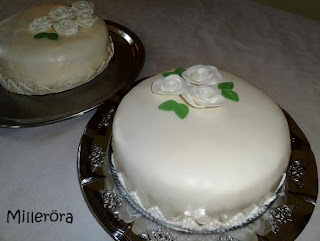 Har en hästtårta, bin tårtor, "finger och smartis" tårta och ännu fler. Jag börjar med att lägga ut begravningstårtorna som jag gjorde i somras. Det är marsipan tårtor med citronkräm, tårtgelé och vaniljkräm.